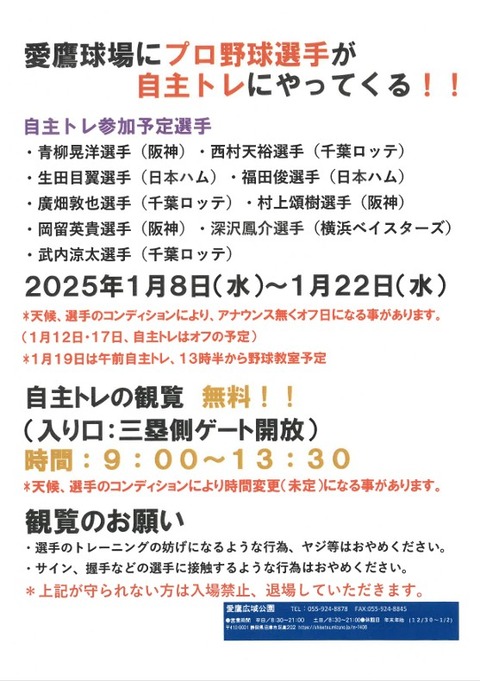 【プロ野球】3年連続!阪神タイガース青柳晃洋投手が率いるプロ野球選手の合同自主トレが沼津で行われる!
