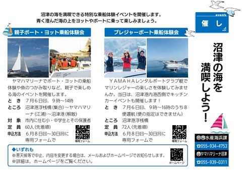 4月にこちらの記事↓でお伝えしたヨット乗船体験。 こちらの会場は戸田でしたが、今度は沼津港で乗船体験会が開催されるそうです!▽広報ぬまづ6月1日···